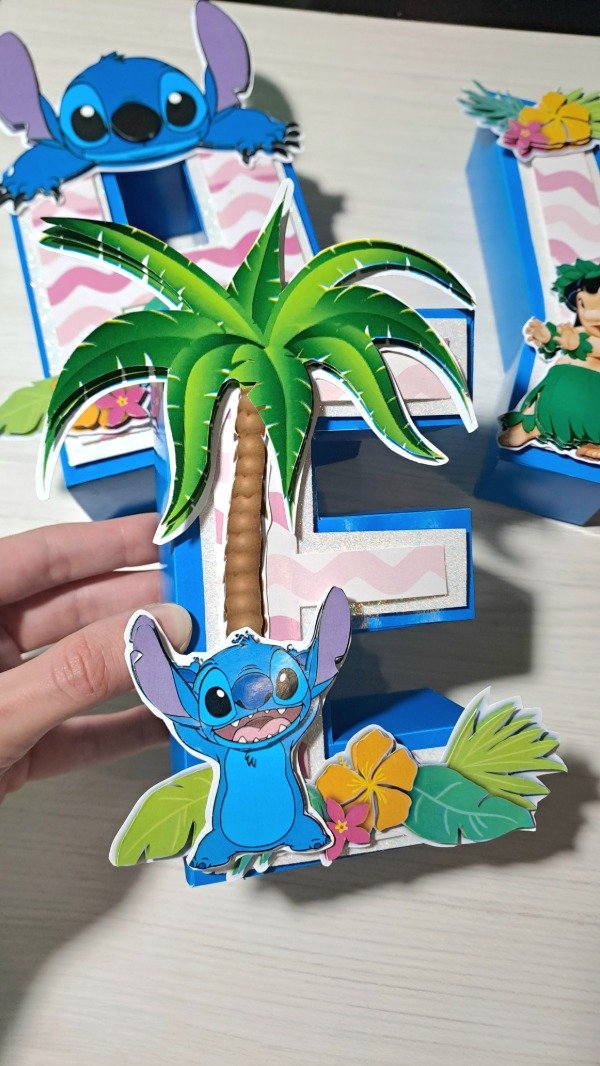 Letras 3D decoradas según temática con distintas capas de papel y textura.